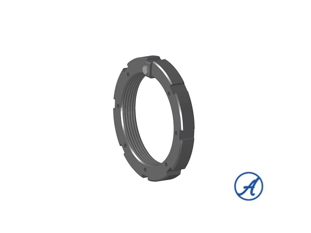 Hřídelová matice KM nejčastěji slouží k axiálnímu zajištění náboje na hřídeli, axiálnímu zajištění ložisek na hřídeli nebo k vytvoření předpětí v kuželíkových ložiskách. Matice má po obvodu zářezy, které slouží pro montáž a utažení matice pomocí hákového klíče.