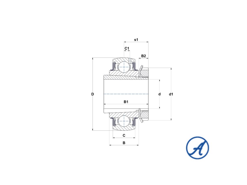 Kuličkové ložisko do ložiskové jednotky. Vnější průměr je zaoblený a vnitřní díra je kuželová pro zajištění pomocí upínacího pouzdra.