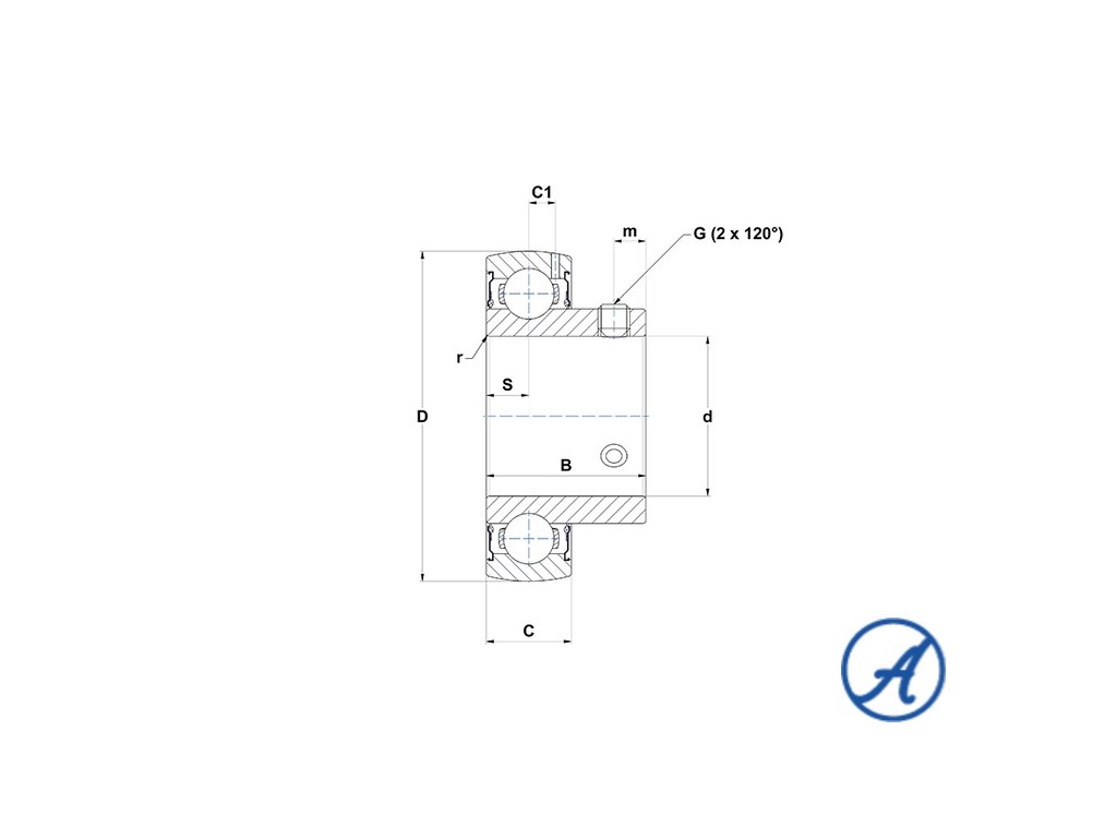 Kuličkové ložisko do ložiskové jednotky, zaoblený vnější průměr, zajistění na hřídeli pomocí červíků, zakryté.